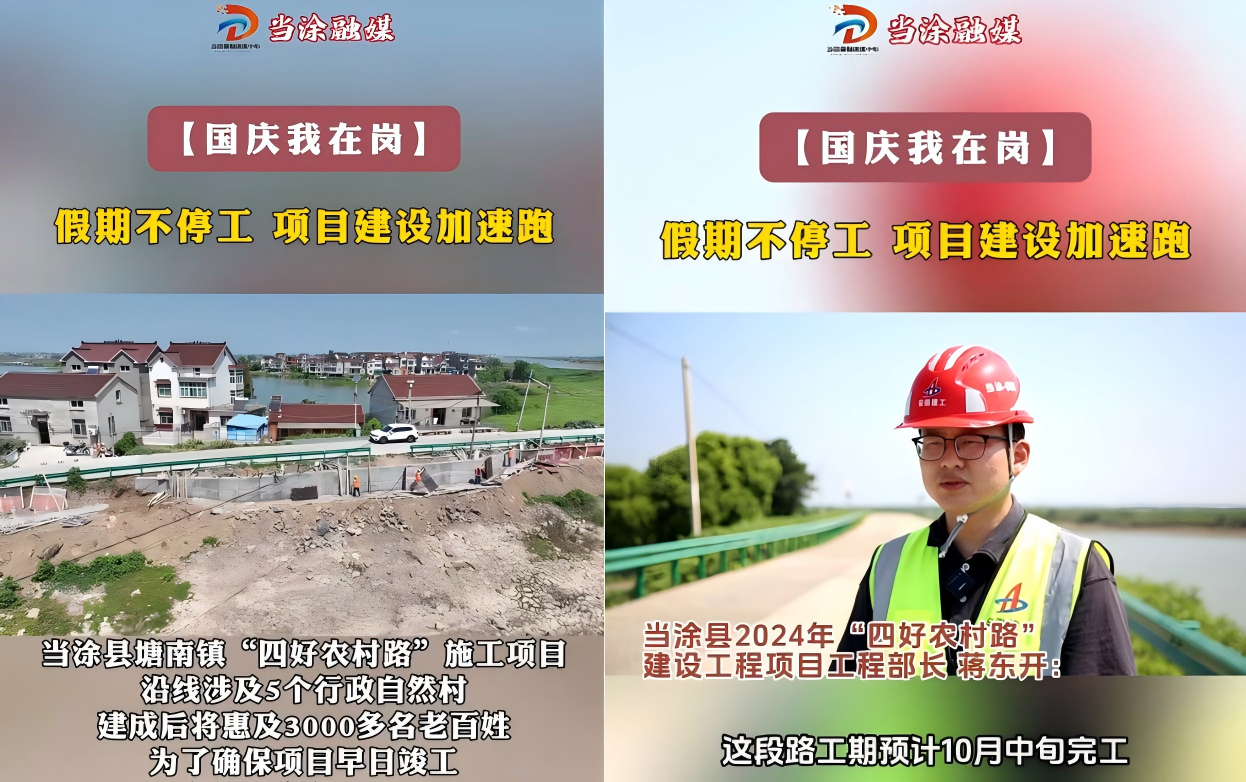 當涂縣2024年“四好農(nóng)村路”建設工程項目施工現(xiàn)場一片繁忙,當涂縣電視臺對項目進行了報道。在采訪中,項目相關人員表示為了盡快讓當?shù)匕傩帐芤婀こ處淼睦帽忝穹眨ㄔO人員們節(jié)日期間堅守一線,發(fā)揚“特別能吃苦,特別能戰(zhàn)斗”的企業(yè)作風,全力以赴推進項目建設。