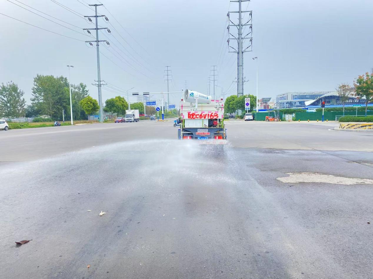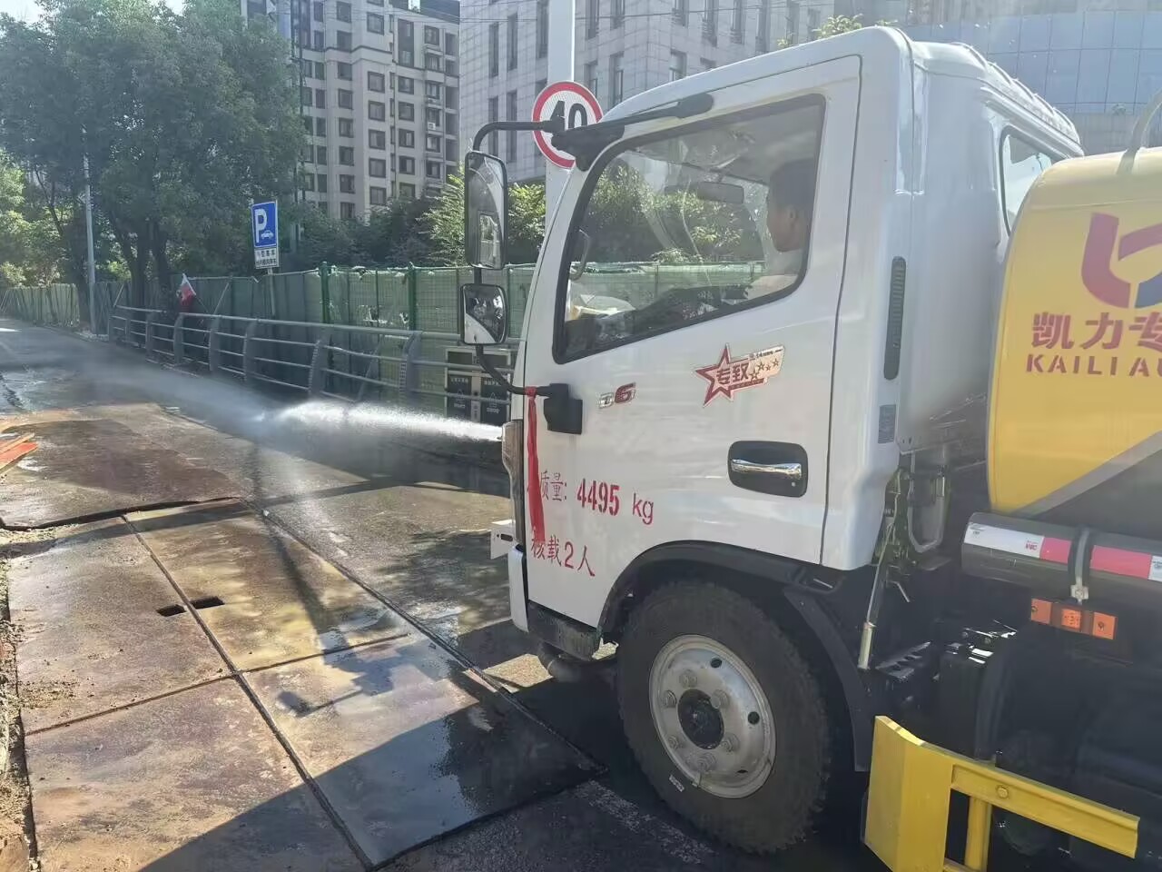 項(xiàng)目部在施工現(xiàn)場(chǎng)配備灑水車,根據(jù)季節(jié)特點(diǎn),堅(jiān)持常態(tài)化灑水抑塵,對(duì)揚(yáng)塵污染重點(diǎn)路段加大日常保潔力度,合理安排灑水車出動(dòng)頻次,全方位進(jìn)行道路灑水,高壓噴槍將水霧滲透到施工現(xiàn)場(chǎng)的每一個(gè)角落,使其保持常態(tài)化濕潤(rùn),保質(zhì)保量達(dá)到濕法作業(yè)要求。