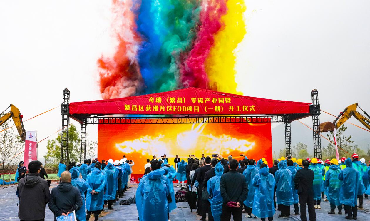 隨著出席本次EOD項目開工儀式的領導共同按下能量柱,一團七色祥云禮花綻放空中,標志著由安徽建工路港承建的奇瑞零碳產業園暨荻港片區EOD項目正式進入實施階段。