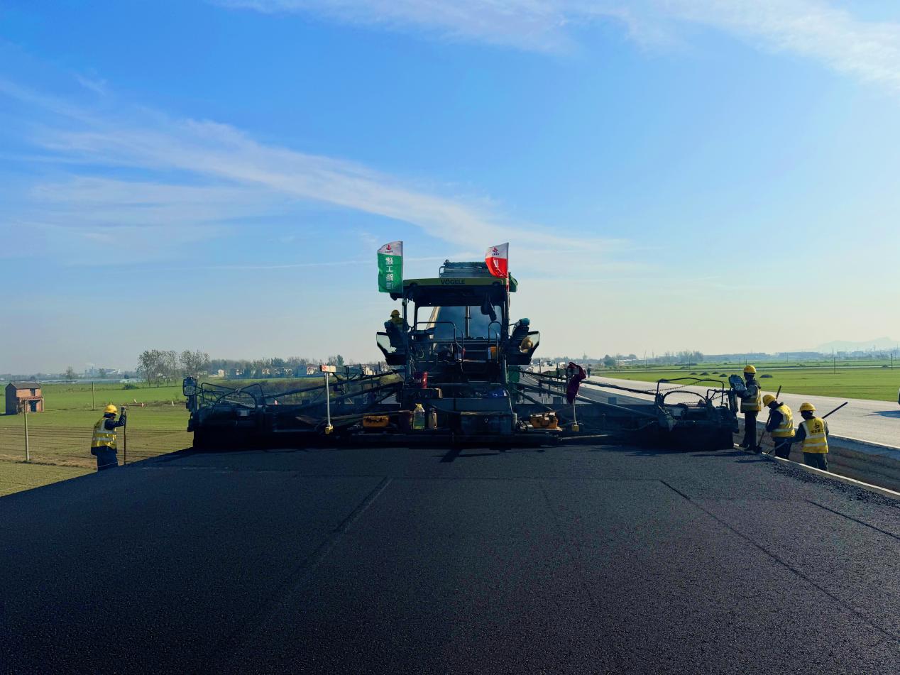 自10月下旬順利完成試驗(yàn)段攤鋪后,近日,徐淮阜路面01標(biāo)開啟全線瀝青面層大面積攤鋪工作。