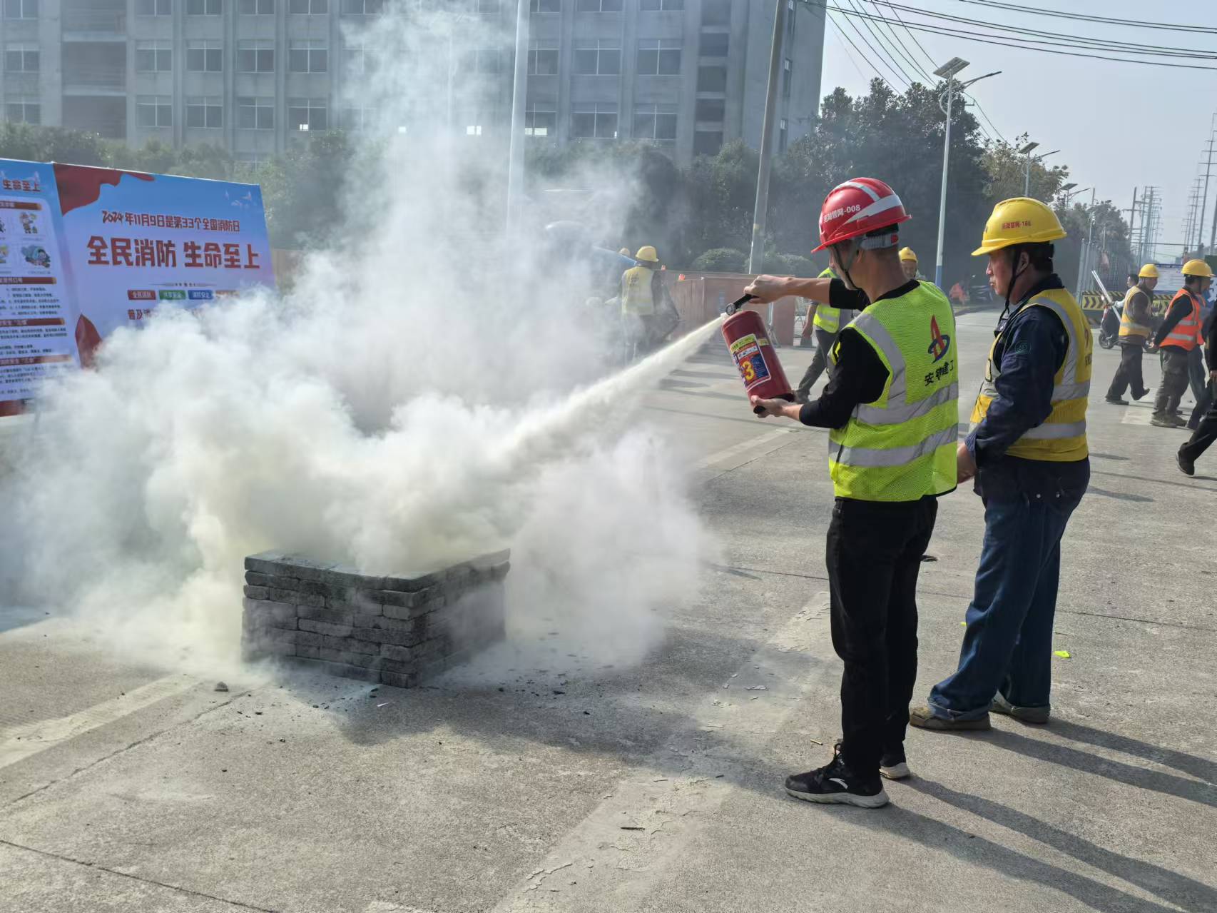 本次演練分為兩個(gè)部分。一是講解應(yīng)對(duì)火災(zāi)的基礎(chǔ)常識(shí)、消防器材的功能及正確使用方式和建筑施工材料堆放相關(guān)注意事項(xiàng)等。二是在現(xiàn)場(chǎng)進(jìn)行消防演練,組織在場(chǎng)人員進(jìn)行疏散與安全施救,模擬火災(zāi)發(fā)生時(shí)運(yùn)用滅火器、消防水帶等器材實(shí)施滅火操作。