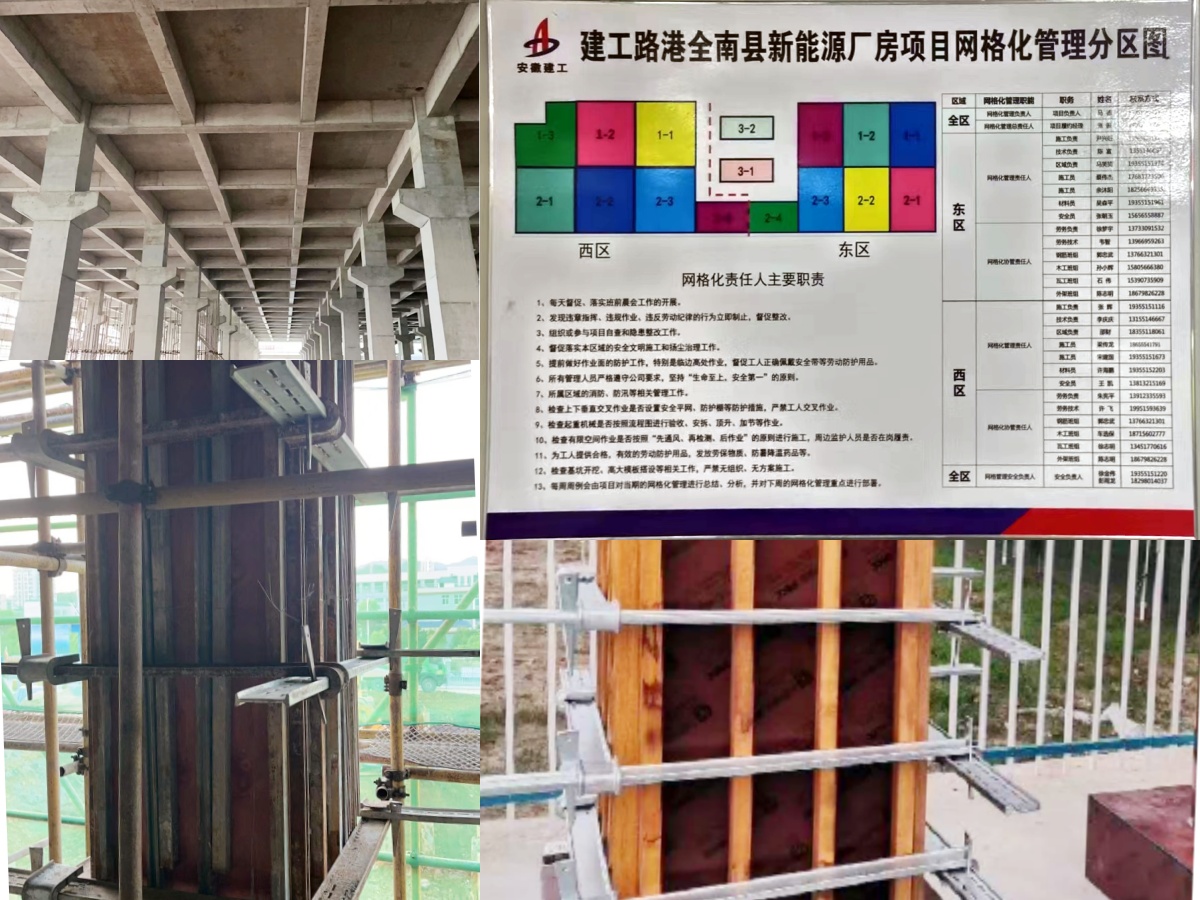 項目在施工中積極采用先進技術并創新管理方式,率先采用定型化加固工藝代替傳統鋼管扣件式模板加固,大幅提升施工速度,減少人力成本,同時確保混凝土成型質量和柱體外觀的光滑平整;在溝槽開挖上,引入簡易定型鋼模板支護工藝,不僅保障了開挖安全,還節省了土方開挖量,直接為項目節約成本約8萬元;項目實施網格化管理模式,將施工區段劃分為多個管理單元,責任到人,實現全覆蓋的動態管理,顯著提高了現場管理的精細度,確保了施工質量和安全。這些技術和管理方式的創新有效提升了施工質效,為項目順利推進和成本控制提供了有力保障。
