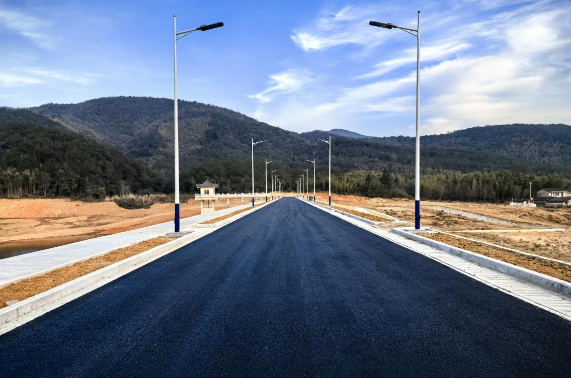 1月20 日,建工路港水利水電分公司宣州水庫項目改建道路及壩頂道路瀝青路面攤鋪全部完成。