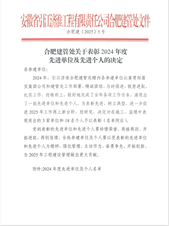 1月23日,建工路港高新區(qū)2號(hào)棄渣場(chǎng)復(fù)墾工程項(xiàng)目部受到業(yè)主單位安徽省引江濟(jì)淮工程有限責(zé)任公司合肥建管處表彰,合肥建管處授予項(xiàng)目部“優(yōu)秀項(xiàng)目部”榮譽(yù)稱號(hào),授予項(xiàng)目職工李利郎“質(zhì)量管理先進(jìn)個(gè)人”、謝旭東“安全管理先進(jìn)個(gè)人”、楊正“信訪維穩(wěn)(農(nóng)民工工資支付保障)先進(jìn)個(gè)人”榮譽(yù)稱號(hào)。