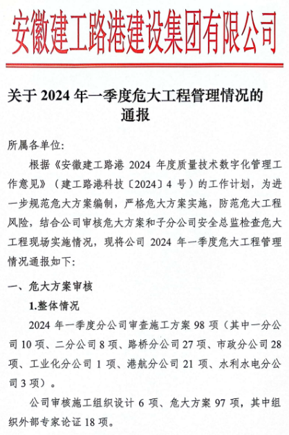 結合危大工程專項施工方案編審以及公司職能部門、子分公司安全總監對危大工程實施過程檢查情況,梳理總結每季度危大工程管理情況,主要通報方案編審常見問題、實施過程檢查發現的不足,并提出有關工作意見。