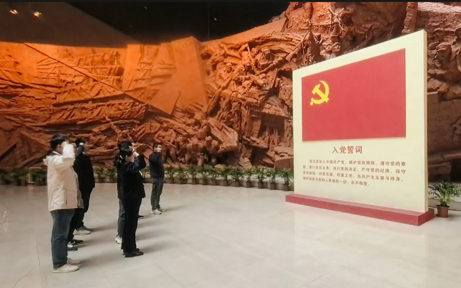 在紀(jì)念館大廳的黨旗下,分公司黨總支副書(shū)記、副經(jīng)理、工會(huì)主席葛思虎帶領(lǐng)全體黨員舉起右拳,莊嚴(yán)宣誓。鏗鏘有力的誓言在大廳內(nèi)回蕩,既是對(duì)革命先烈的深切緬懷,也是對(duì)初心使命的鄭重承諾。