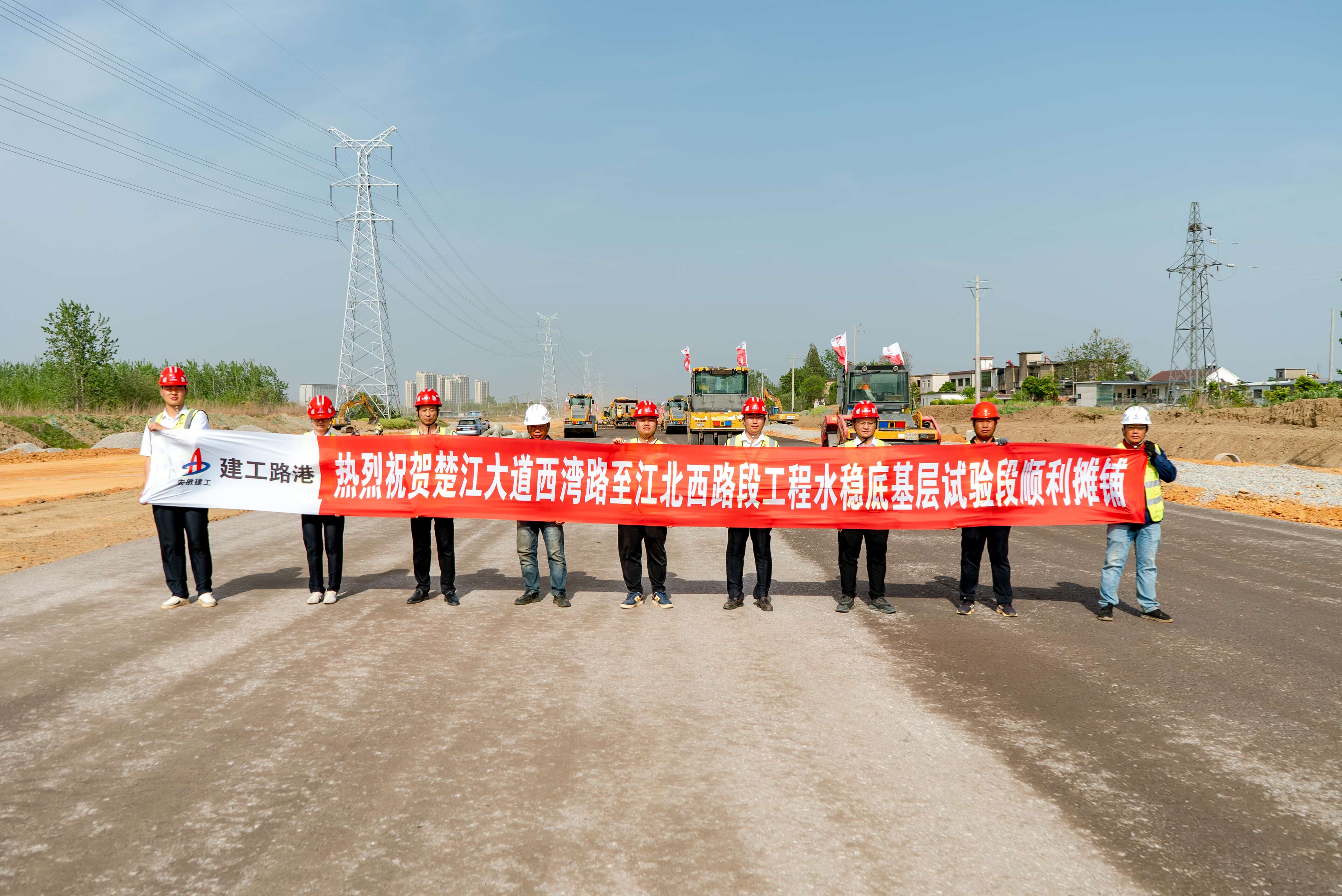4月17日,建工路港楚江大道西灣路至江北西路段工程項目水穩底基層試驗段順利攤鋪,標志著項目正式進入大規模路面施工階段。