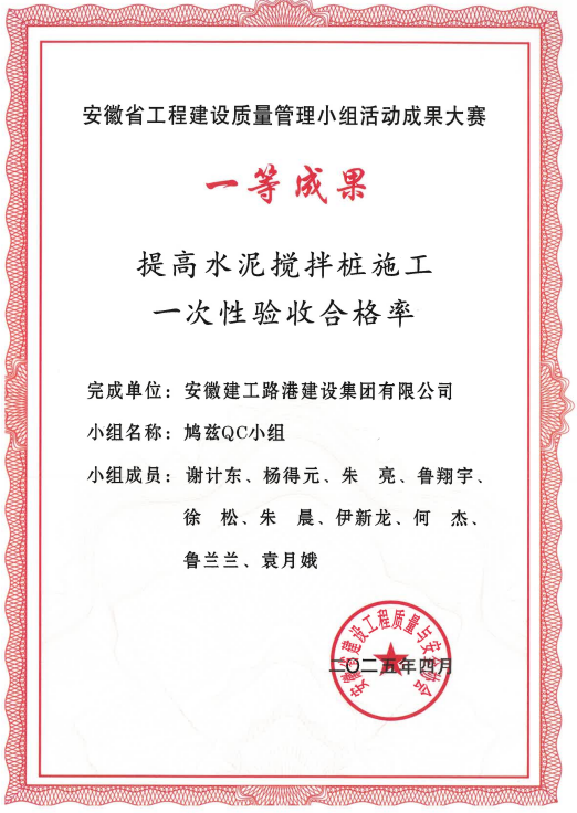 以品質為生命線,構建全周期質量管理體系,在已竣工項目中,派河口船閘項目憑借創新工藝與卓越品質,一舉攬獲安徽省優質工程獎、集團“建工杯”;S246太湖PPP項目榮獲安慶市“振風杯”質量獎項,成為區域工程建設的品質典范,同時榮獲安徽省質量協會QC獎項4項;目前,明光嘉山項目、派河口船閘正全力推進2025年“黃山杯”現場核查工作。