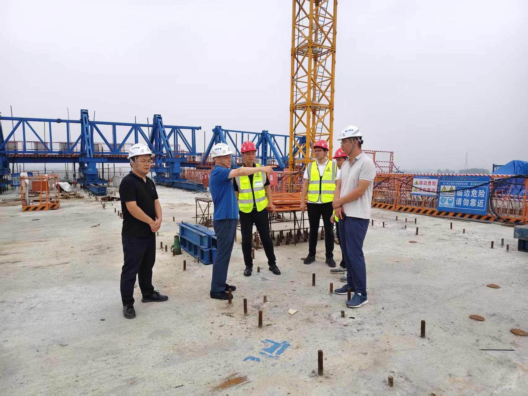 檢查組聚焦懸澆掛籃施工,檢查了軌道錨固間距、三角主桁架規格尺寸、軌道墊梁布置間距、高速側防落物防護、危大工程驗收及公示等重點環節,同步對施工現場立柱鋼筋保護層厚度、強度及內業資料等進行逐一檢查。檢查組強調,在后續正式步入跨高速施工時,公司將開展“再交底、再培訓”活動,持續提升安全生產精細化管理水平。