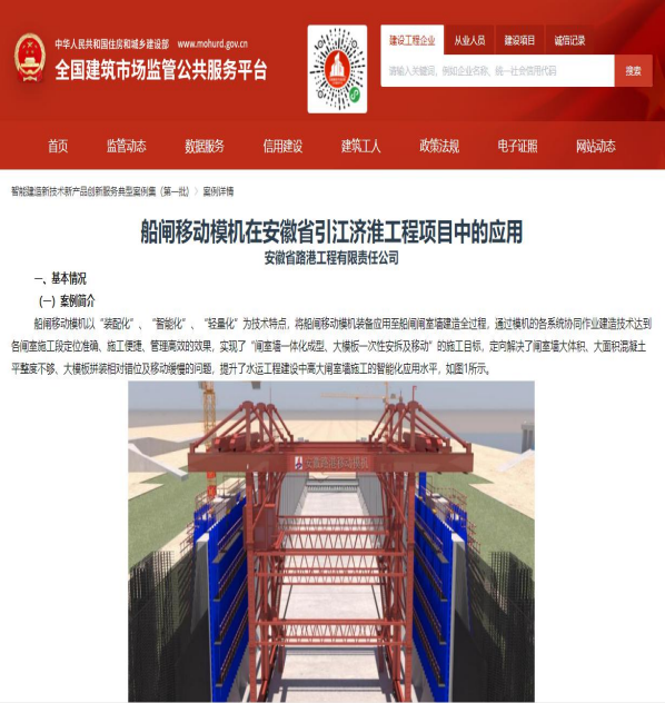 近日,安徽省市場監(jiān)督管理局發(fā)布了2025年度安徽省地方標準公告名單,建工股份、建工路港公司主編的《船閘閘室裝配式智能移動模機應(yīng)用技術(shù)規(guī)程》(DB34T 5183—2025)正式落地實施。該標準是全國首部針對船閘智能建造的技術(shù)規(guī)程,不僅為安徽船閘工程建造技術(shù)革新提供了堅實的規(guī)范指引,更標志著全國水運基礎(chǔ)設(shè)施建設(shè)領(lǐng)域邁入了新的里程。