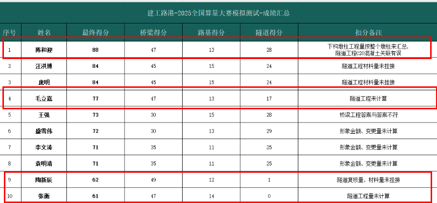 近日,在2025年公司算量大賽賽前測評中,第二公路工程公司共有4名職工進入測評成績前十名,其中1名職工以優異成績榮登榜首,充分展現了第二公路工程公司在工程算量領域的技術實力與人才儲備優勢。