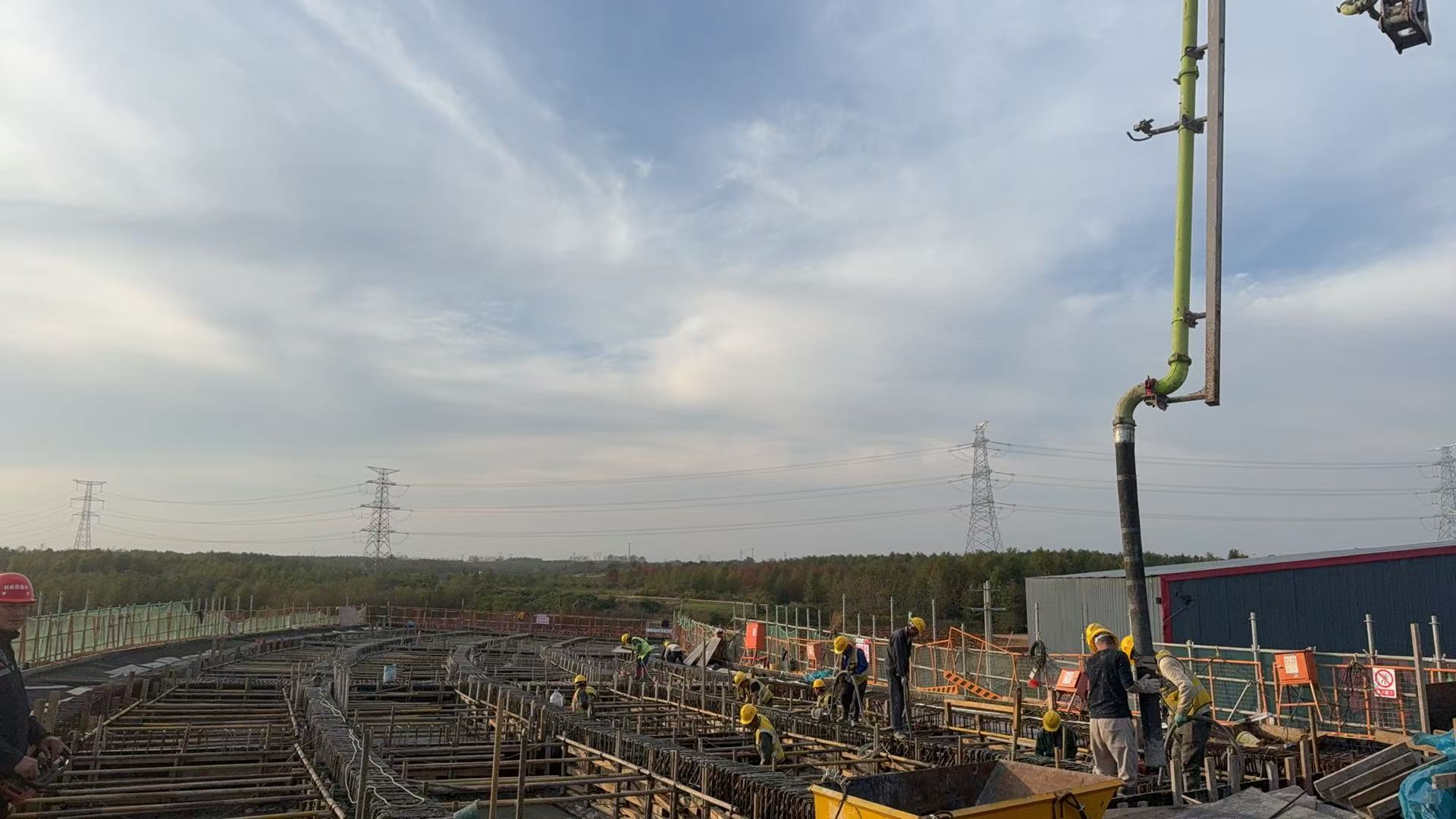 11月3日清晨八時(shí),紫蓬山互通現(xiàn)澆橋第三聯(lián)底腹板澆筑工作正式啟動(dòng),一線作業(yè)人員加班加點(diǎn)連續(xù)奮戰(zhàn),順利完成400余方混凝土一次性澆筑,為后續(xù)橋面頂板施工奠定堅(jiān)實(shí)基礎(chǔ)。