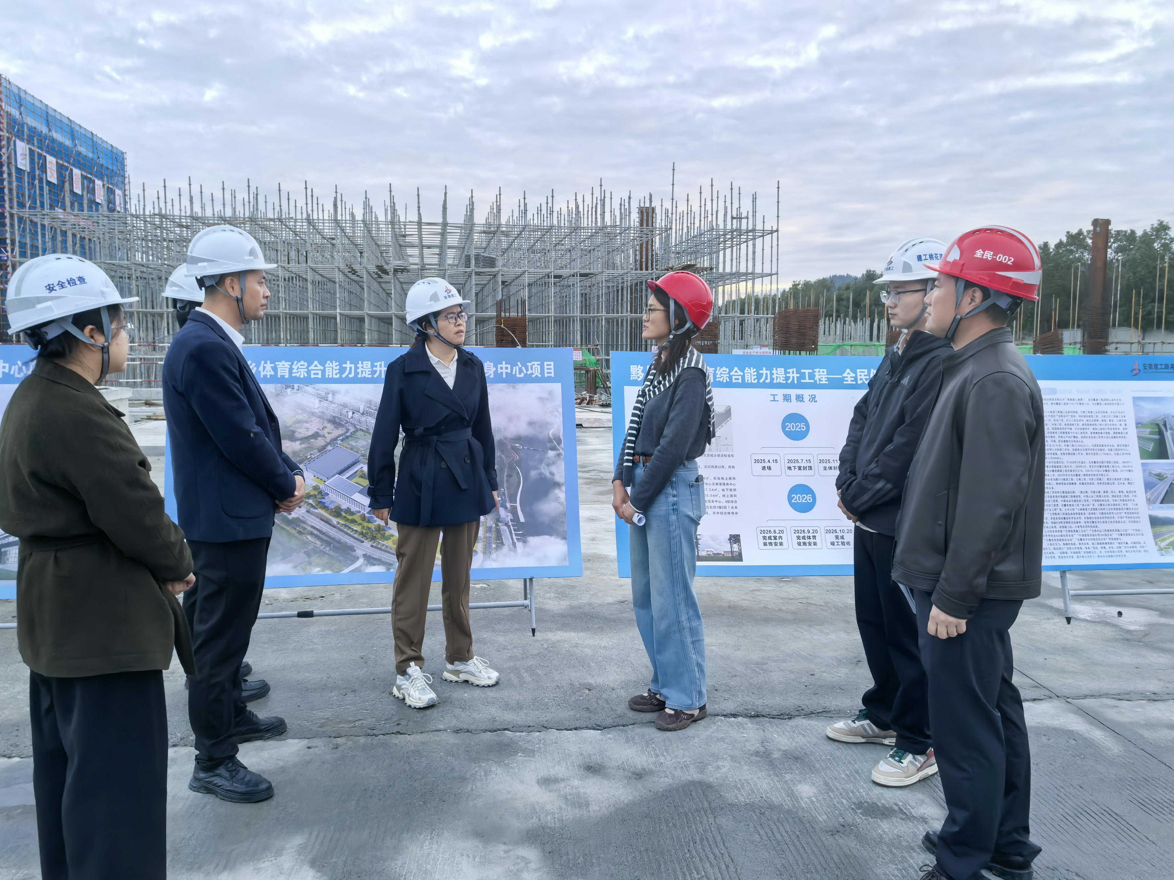 近日,黟縣縣委副書記鄭美風一行赴建工路港公司承建的黟縣全民健身中心項目調研。黟縣發展和改革委員會、黟縣國投集團、監理單位、項目部等相關人員參加。