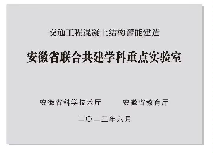 交通工程混凝土結構智能建造安徽省聯合共建學科重點實驗室是經安徽省科學技術廳、安徽省教育廳批準(皖科基地秘〔2023〕108號),于2023年4月設立的省級重點實驗室。本實驗室由安徽建工路港建設集團有限公司(原安徽省路港工程有限責任公司)依托建設,合肥工業大學共建,是安徽省首批校企聯合共建學科重點實驗室。實驗室聚焦交通工程混凝土結構智能建造全鏈條創新,涵蓋基礎理論研究、智能建造技術開發、高端裝備研發及綠色建材應用四大方向,致力于打造國內一流、國際先進的科研平臺。
